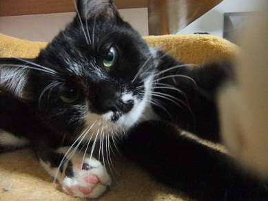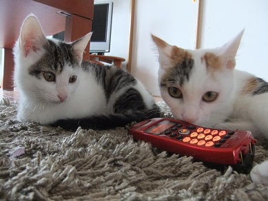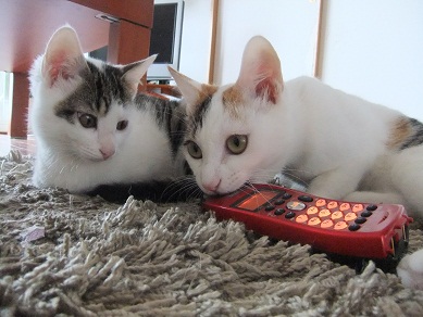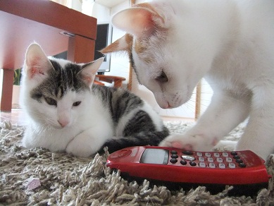 「むむ、これは何にゃ」と、電話機に興味津々 あんまり熱心にいじくっているので 電話をかけてみましたよ(笑 「くせものニャー」