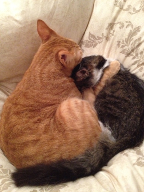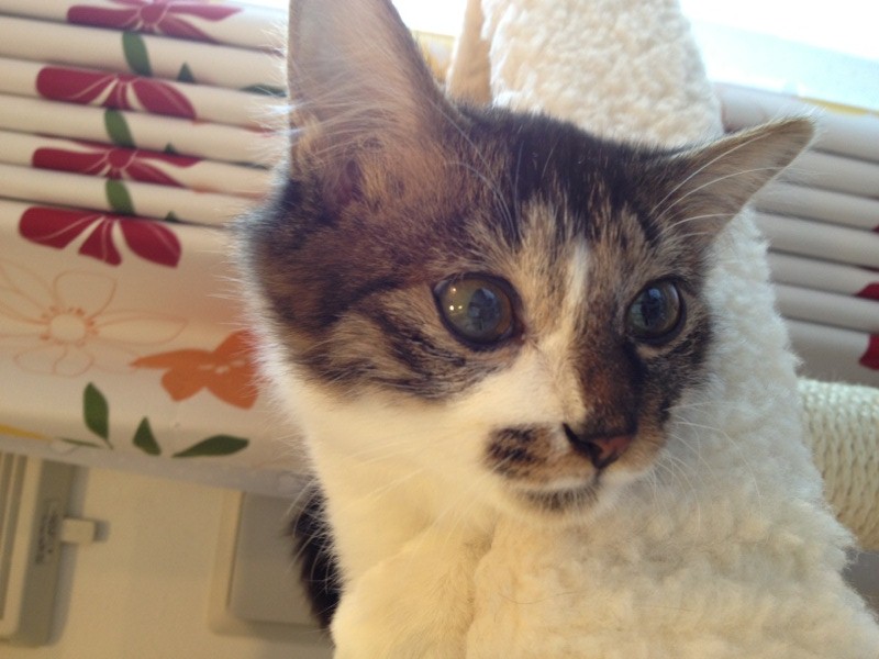多少なりとも白い膜は残ってしまうだろうと思っていた右目が こんなにぱっちりキラキラ 目薬治療を熱心に続けてくださったのでしょう 「シフォン」という愛らしい名前をもらって 先住猫ちゃんとも仲良しで 愛されて 大事にされて ボクとっても幸せって顔してる^^