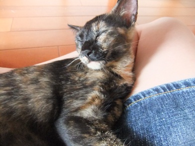 トイレにもついてきて膝の上に飛び乗り