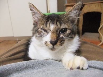 右目は完全にふさがり元気もまるでないので様子見のためしばらく隔離