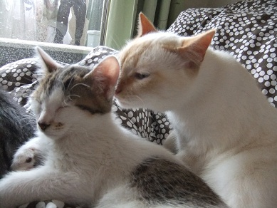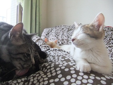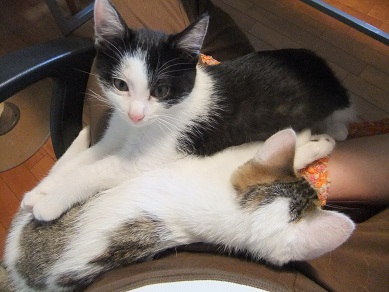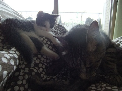 穏やかでのんびりやさんの2匹 子猫にありがちな、しつこさや傍若無人ぶりがまるでないから 先輩猫受けはバツグン♪ 「気持ちいいにゃぁ~」 「ボクは~?」 「はいはい、おいで」 愛されキャラの、惑&月です♪