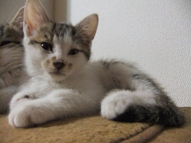 里親募集を開始した3匹 「可愛い眉毛に一目ぼれしました」と、 里親希望のご連絡をいただいたのは星ちゃん ま、眉毛なんてあったっけ(汗? ありますね(笑) 眉毛で良縁を引き寄せた星ちゃんに、2匹も続くのだ! 「ん?」 「んん?」