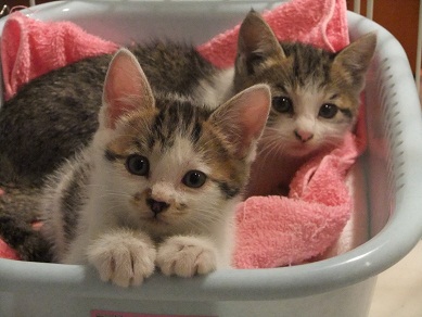 最初に保護した「惑ちゃん♂」は、おっとりマイペース 寂しがり屋で泣き虫なのは、「星ちゃん♀」