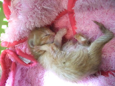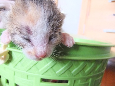 9匹のうち目が開いているのは、まだこの子だけ