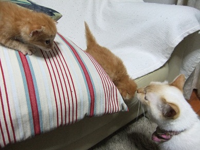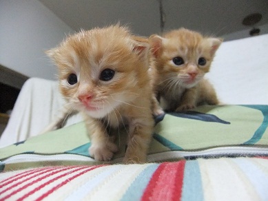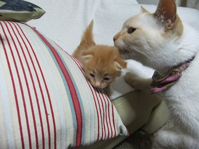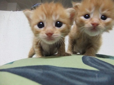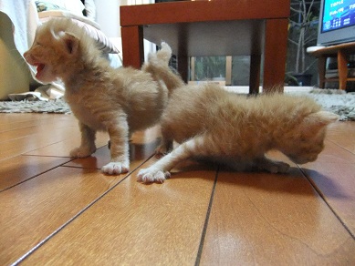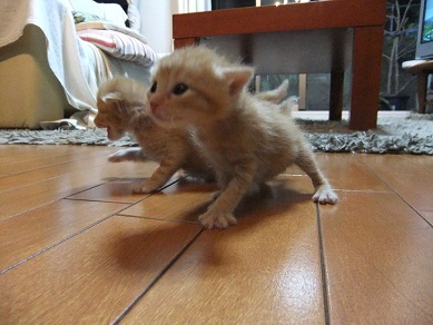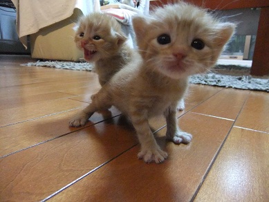 子猫の泣き声にかけよってきて