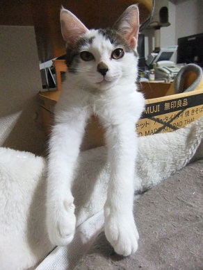みるくちゃんは、うちの子たちに仲間入りするためのトレーニングを開始しました。