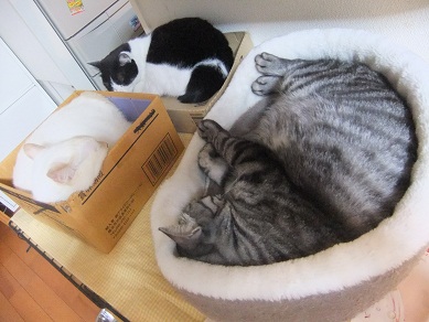 急に涼しくなったこの数日で、猫ベッドの利用復活