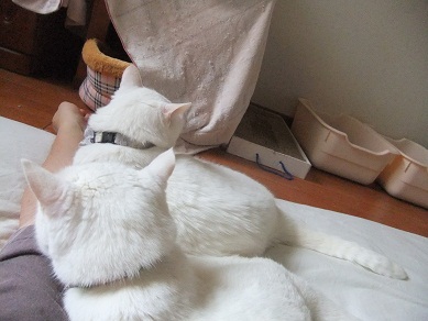 先住猫ちゃんと隔離&トイレの熱湯消毒、と