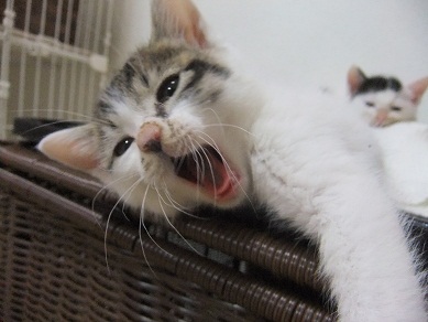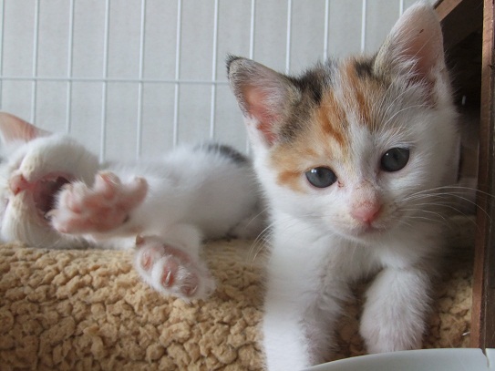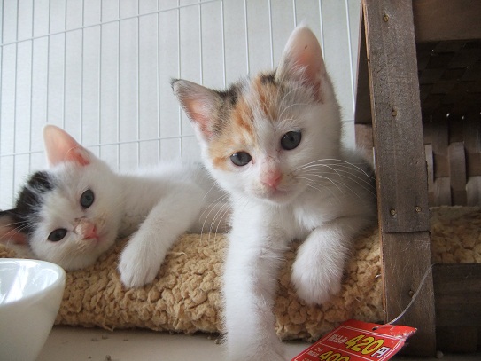 里親さんが帰宅すると、2匹ともビショビショの状態で恐怖のためか硬直