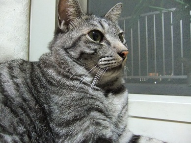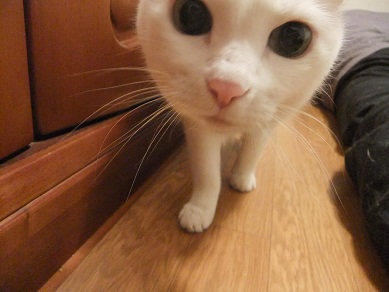 膝の上のおねんねが大好きで、何かを訴えかけるようにじっと視線を