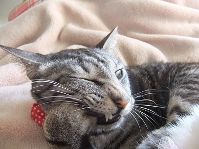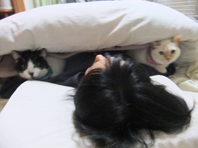 ちょうど昼寝中だったニャンズは押入れに避難、