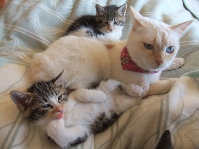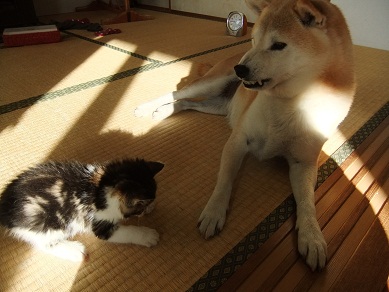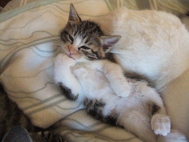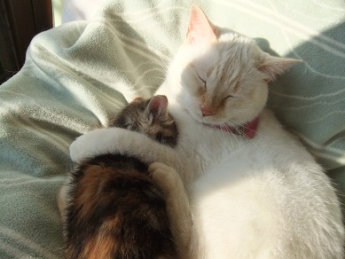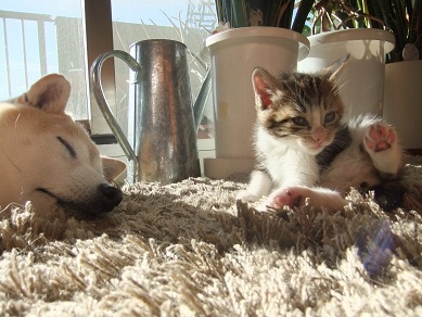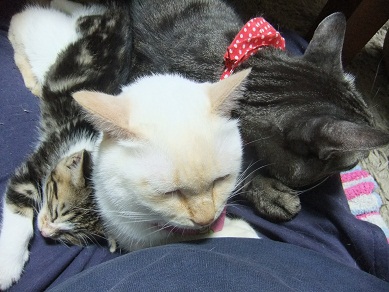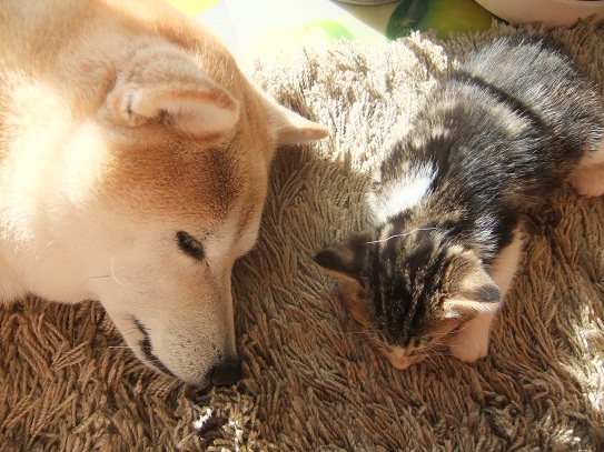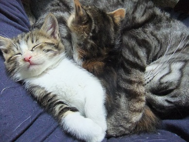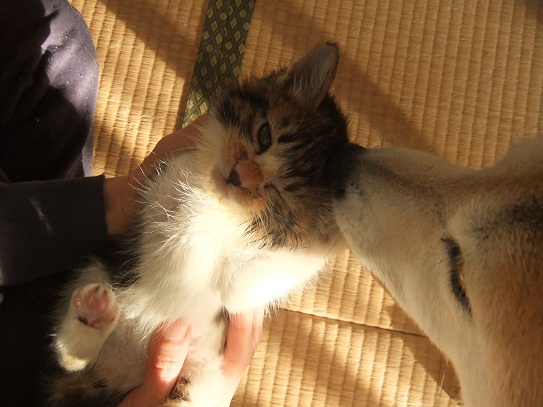 今回珍しく大活躍な、まいる じゃれつく子猫の相手をしたり(ムキっ歯ですが(笑)) せっせと舐めたり・・・ 子猫も甘えて、やたらそばに接近 睡眠をジャマされると、飼い主に対しても怒る子なのに 一瞬ムッとしながらも耐えて こんなに優しい表情に 子猫の前では、みんな優しい気持ちになるのかな 誰もがみんなそうだといいのにな
