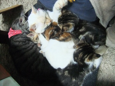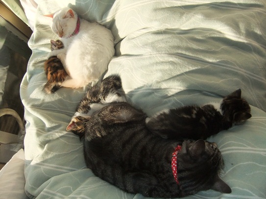 寝起きの縦列駐猫 午前中の猫団子 日光浴にいそしむお昼間 短い冬の午後 ずっしり膝の上の夜長