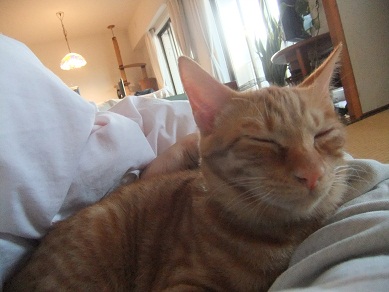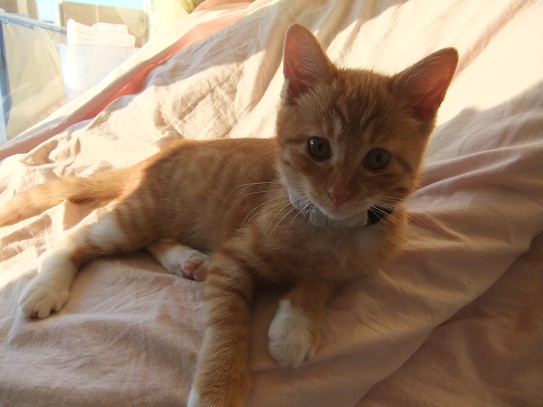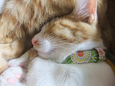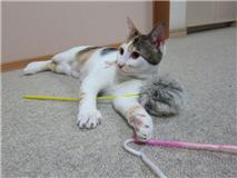 ごはんタイム、他の子のごはんを前足 で押さえ込んで「全部ぼくの~」と 主張する気の強さがあるかと思えば 猫じゃらしタイム、どんくさくてみんなの スピードについていけず、「ぼくもやりたい~(泣)」と 泣き言をいいつつ、何とかがんばる健気さ