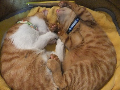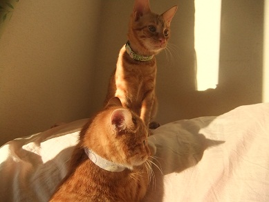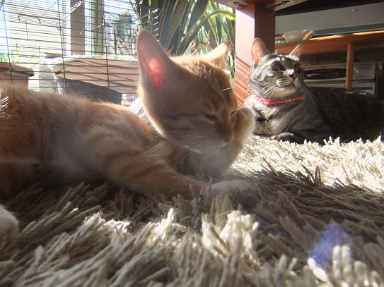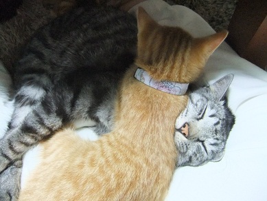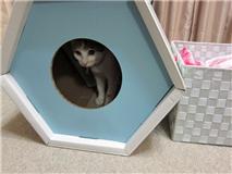 先住猫ちゃんのいるお宅にトライアルに入ったチャッピー お届け時、物怖じすることなく家中を探索しだしたチャッピーに対し 気弱でおとなしい3歳のにゃみちゃんは、箱の中に避難 最初の数日はチャッピーを避けていたにゃみちゃんですが、 10歳の末娘さんが2匹を同じように可愛がるようにしたら、 2匹の距離がぐっと近づいたそうです チャッピー、順調にトライアル中です