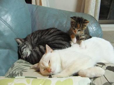 おてんば娘まっしぐらの、うずら 襲われても懲りずに近づく その無鉄砲ぶりで、2匹の仲は急接近 一緒に遊んだりして なかなか大物です 夢中でボールを追いかけては 疲れ果てて爆睡するのもつかの間 遊び相手をたたき起こしてまた遊びだします