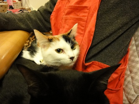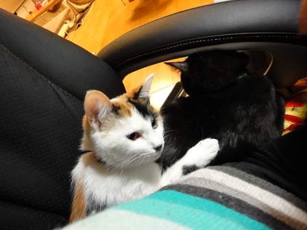 暖かいおひざだにゃーん。