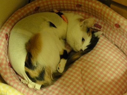 お姉ちゃんは避妊手術の翌日はヘロヘロで、寝たきりにゃんこ。