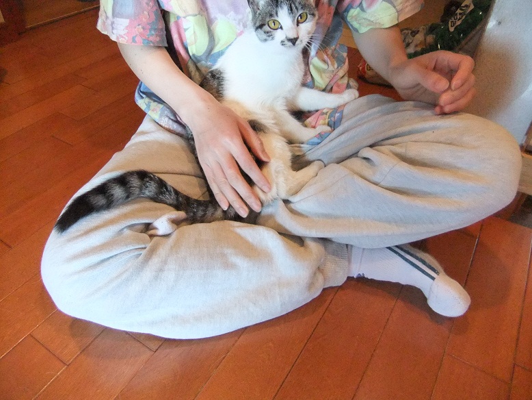 膝の上は激戦区の我が家において 今やセリちゃんの独占状態 子猫の特権=遠慮がないので 順番待ちの子がいても決してどきません(^_^;) おとなしく待っていた志乃ちゃん しびれを切らしセリちゃんの前に移動 「そろそろアタチの番にゃー」