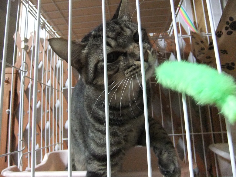 野良生活で子猫2匹を必死に育てた頑張り屋さんで、避妊後も何匹もの子猫にお乳を与え育ててくれた母性の持ち主。ベタベタ大好きな甘えん坊ちゃん
