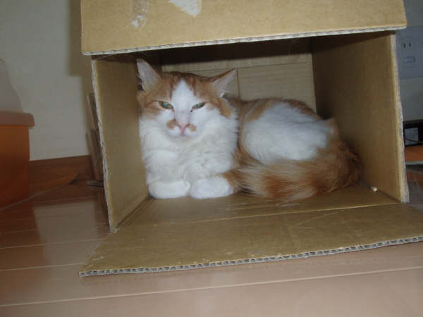 昼間は段ボールハウスでウツラウツラしております。