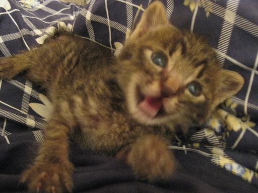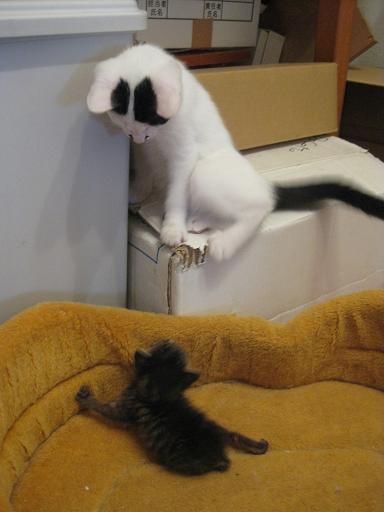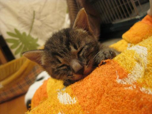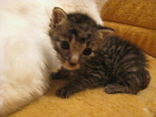 こんなに小さい子猫を育てるのは初めてで不安だらけでしたが、季節が夏で保温が楽だったこと、保護する直前まで母猫と一緒だったらしいこと、乳母役みるくの存在など、好条件が揃っていたのが幸いしました。