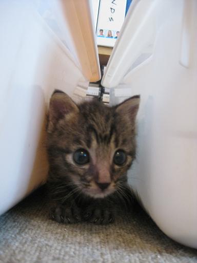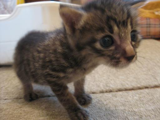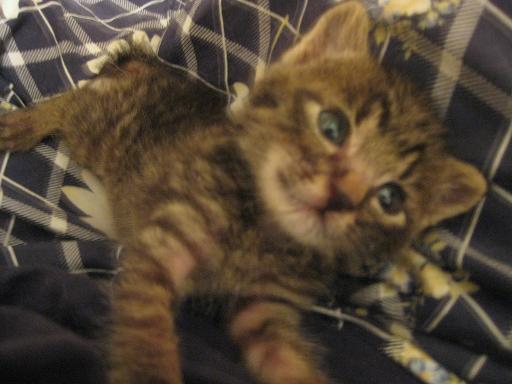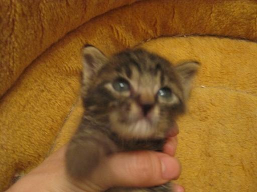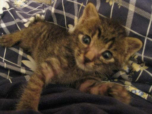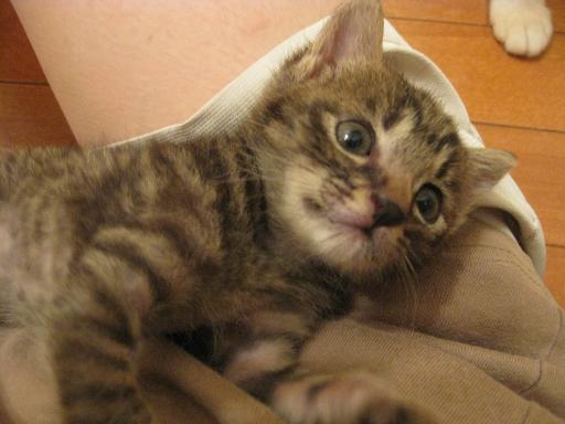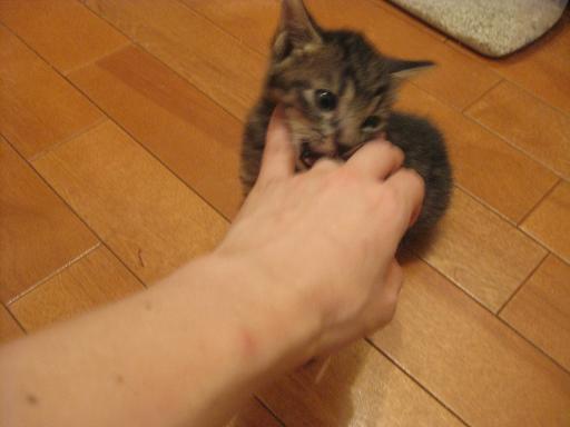 噛んでくるわ、体をよじのぼってくるわ。やんちゃ小僧になってきた。たぶん男の子かな。